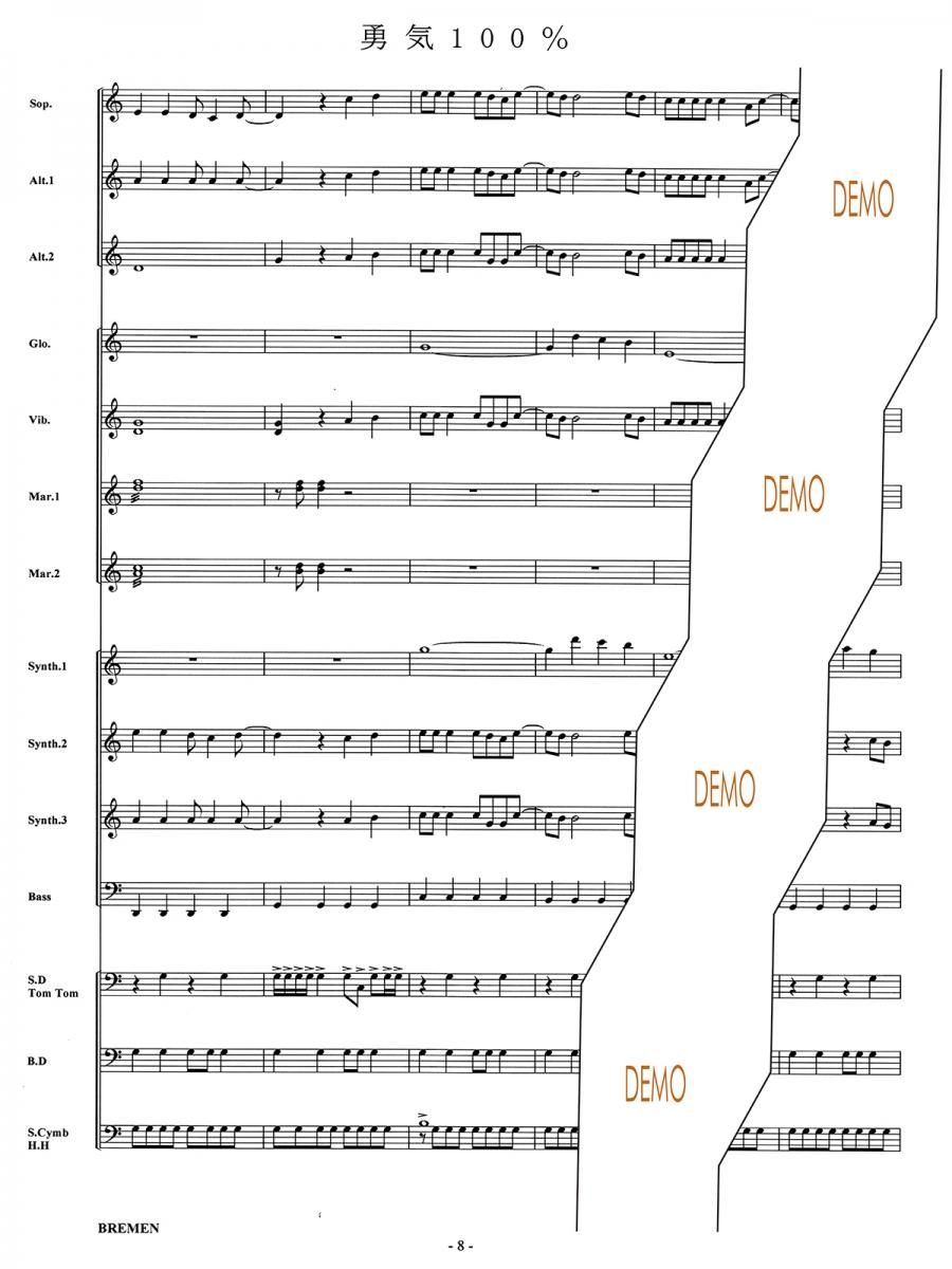 主な使用楽器:鍵盤ハーモニカ、グロッケン(鉄琴)、ビブラフォーン(鉄琴)、マリンバ(木琴)、シンセサイザー(電子オルガン)、ベース(低音楽器)、スネアドラム(小太鼓)、バスドラム(大太鼓)、パーカッション、ティンパニー等