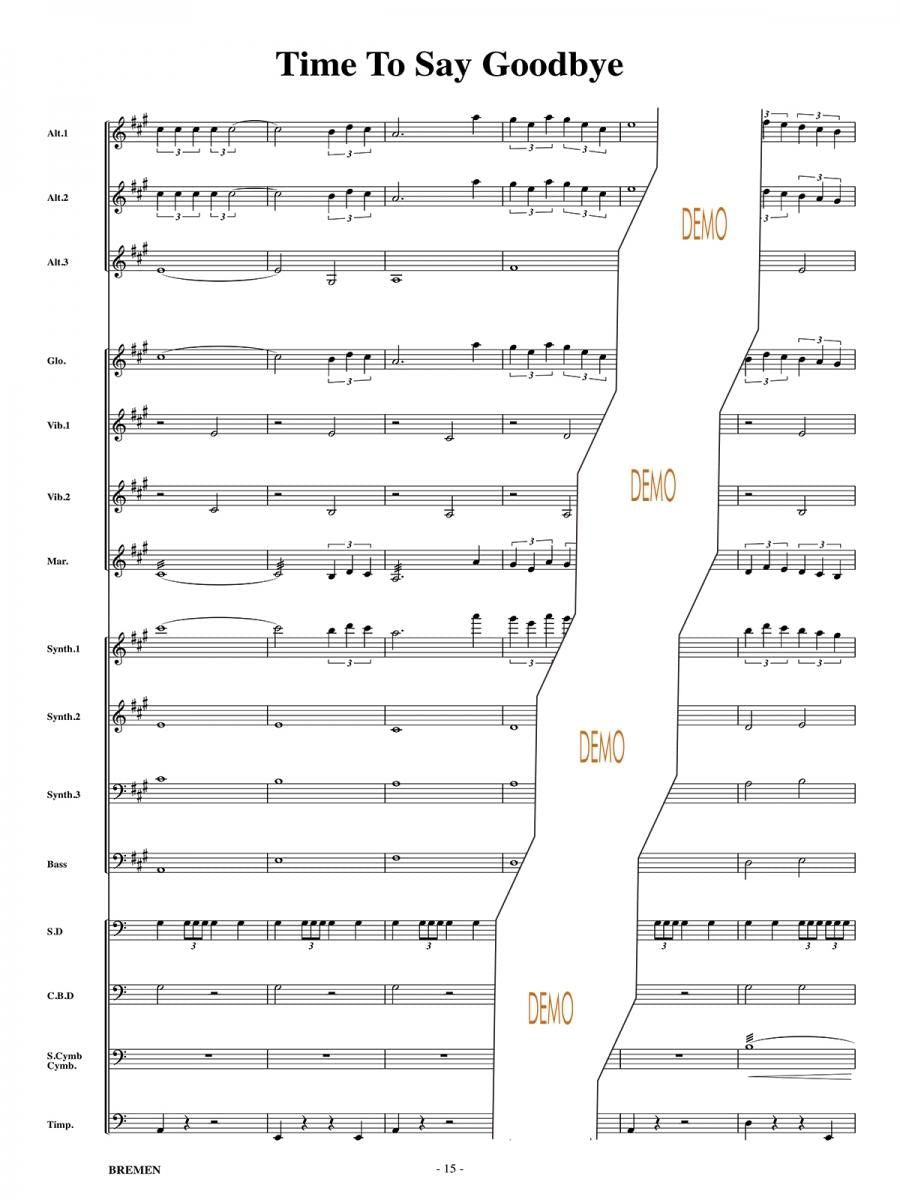 主な使用楽器:鍵盤ハーモニカ、グロッケン(鉄琴)、ビブラフォーン(鉄琴)、マリンバ(木琴)、シンセサイザー(電子オルガン)、ベース(低音楽器)、スネアドラム(小太鼓)、バスドラム(大太鼓)、パーカッション、ティンパニー等