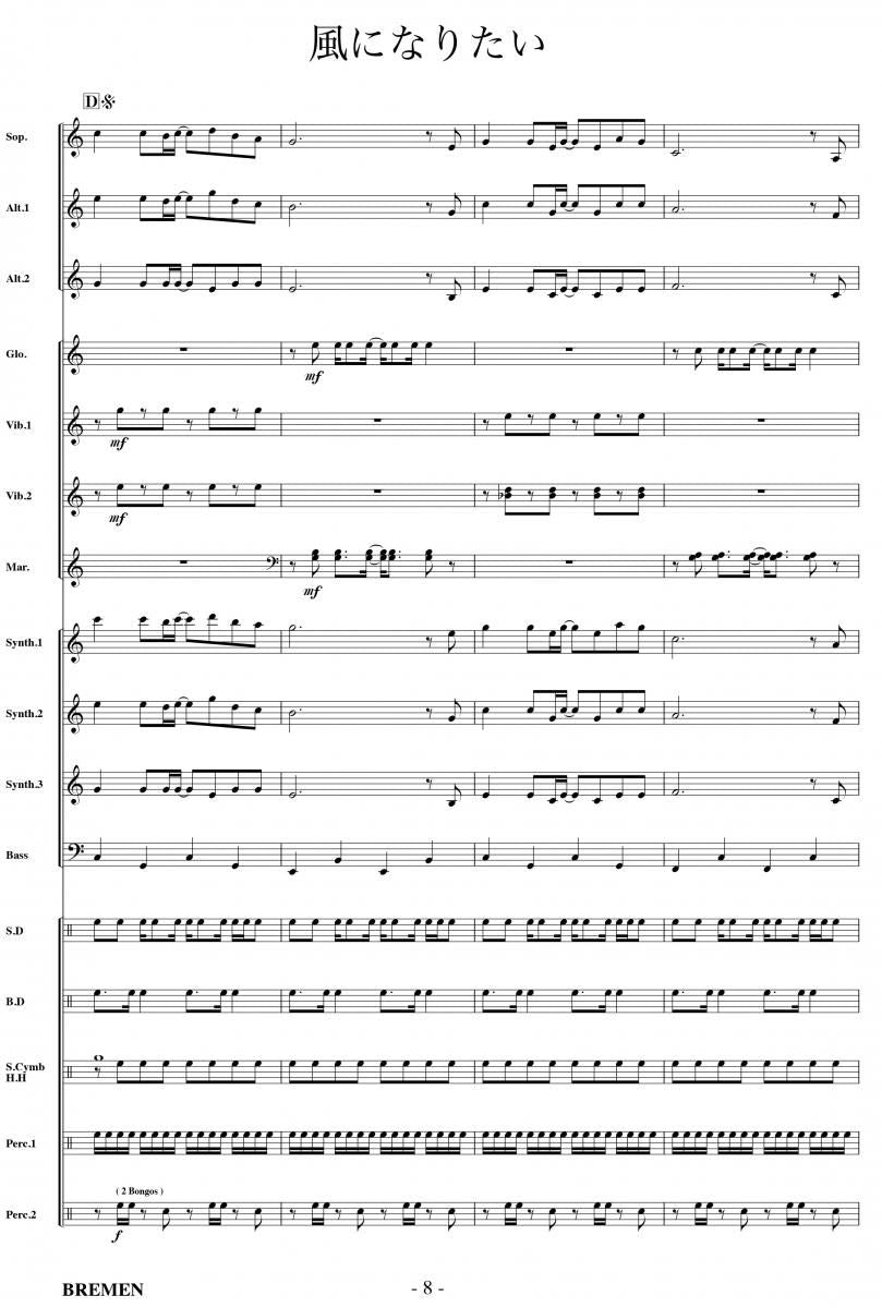 主な使用楽器:鍵盤ハーモニカ、グロッケン(鉄琴)、ビブラフォーン(鉄琴)、マリンバ(木琴)、シンセサイザー(電子オルガン)、ベース(低音楽器)、スネアドラム(小太鼓)、バスドラム(大太鼓)、パーカッション、ティンパニー等