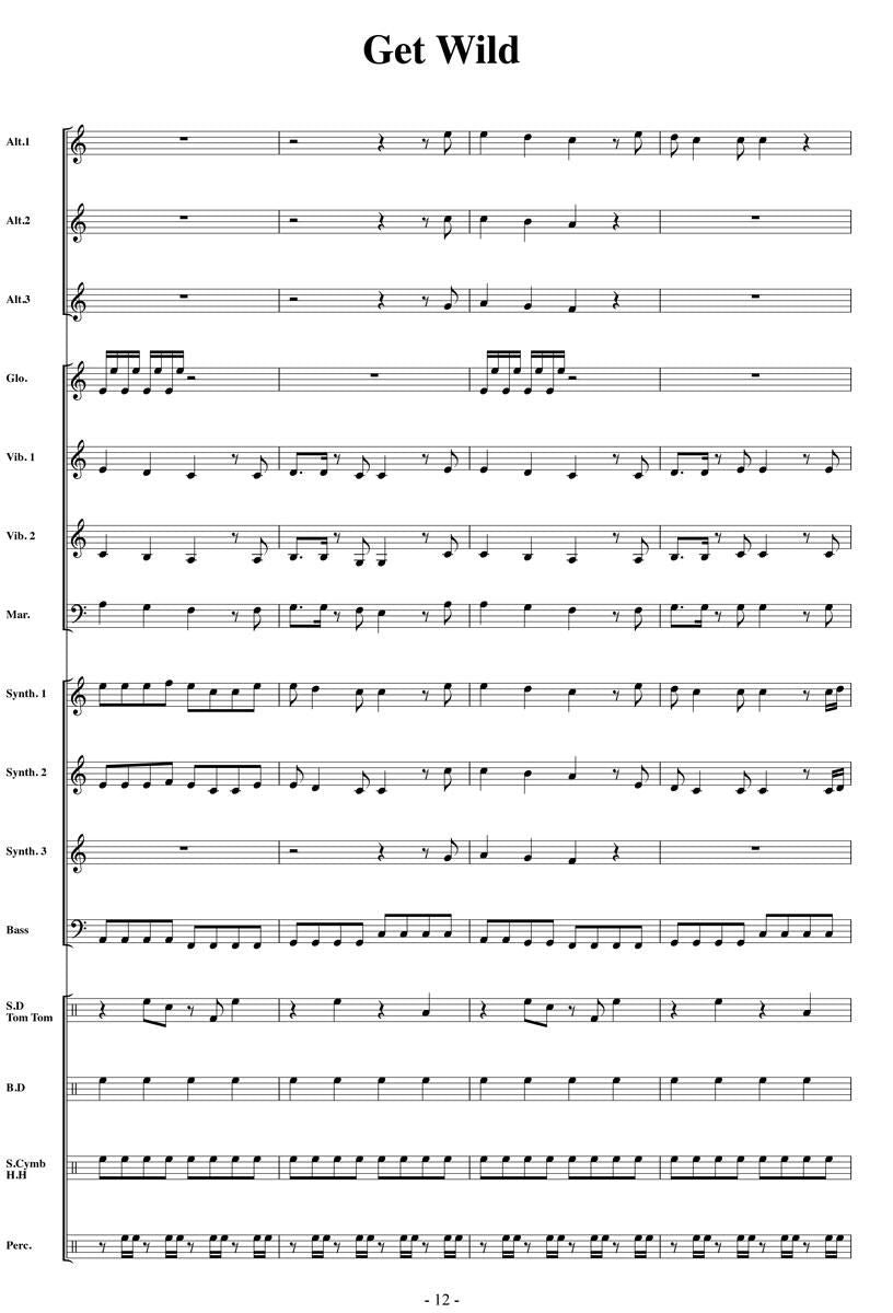 主な使用楽器:鍵盤ハーモニカ、グロッケン(鉄琴)、ビブラフォーン(鉄琴)、マリンバ(木琴)、シンセサイザー(電子オルガン)、ベース(低音楽器)、スネアドラム(小太鼓)、バスドラム(大太鼓)、パーカッション、ティンパニー等