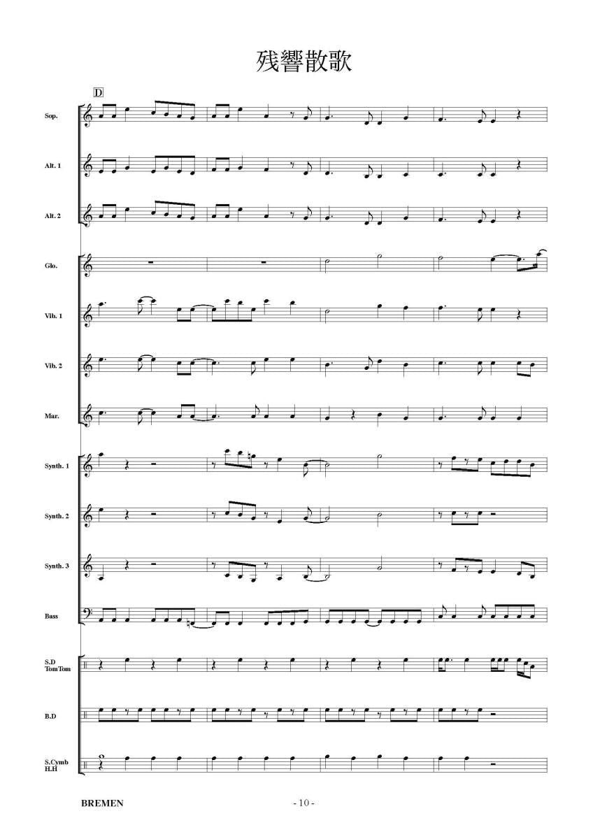 主な使用楽器:鍵盤ハーモニカ、グロッケン(鉄琴)、ビブラフォーン(鉄琴)、マリンバ(木琴)、シンセサイザー(電子オルガン)、ベース(低音楽器)、スネアドラム(小太鼓)、バスドラム(大太鼓)、パーカッション、ティンパニー等