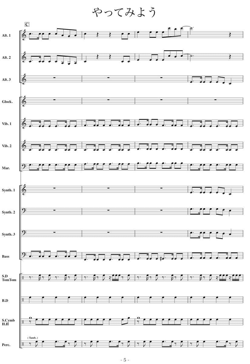 主な使用楽器:鍵盤ハーモニカ、グロッケン(鉄琴)、ビブラフォーン(鉄琴)、マリンバ(木琴)、シンセサイザー(電子オルガン)、ベース(低音楽器)、スネアドラム(小太鼓)、バスドラム(大太鼓)、パーカッション、ティンパニー等
