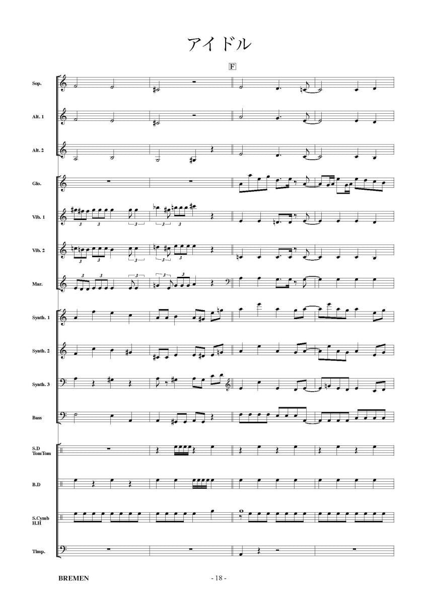 主な使用楽器:鍵盤ハーモニカ、グロッケン(鉄琴)、ビブラフォーン(鉄琴)、マリンバ(木琴)、シンセサイザー(電子オルガン)、ベース(低音楽器)、スネアドラム(小太鼓)、バスドラム(大太鼓)、パーカッション、ティンパニー等