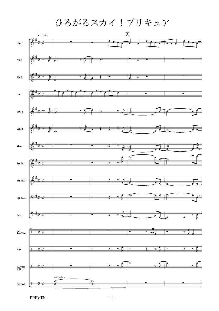 主な使用楽器:鍵盤ハーモニカ、グロッケン(鉄琴)、ビブラフォーン(鉄琴)、マリンバ(木琴)、シンセサイザー(電子オルガン)、ベース(低音楽器)、スネアドラム(小太鼓)、バスドラム(大太鼓)、パーカッション、ティンパニー等