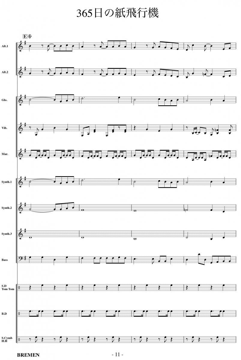 主な使用楽器:鍵盤ハーモニカ、グロッケン(鉄琴)、ビブラフォーン(鉄琴)、マリンバ(木琴)、シンセサイザー(電子オルガン)、ベース(低音楽器)、スネアドラム(小太鼓)、バスドラム(大太鼓)、パーカッション、ティンパニー等