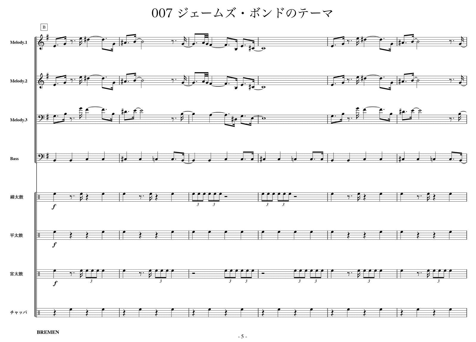 主な使用楽器:鍵盤ハーモニカ、グロッケン(鉄琴)、ビブラフォーン(鉄琴)、マリンバ(木琴)、シンセサイザー(電子オルガン)、ベース(低音楽器)、宮太鼓、長胴太鼓、平太鼓(たる太鼓)、締太鼓、チャンチキ、チャッパ等