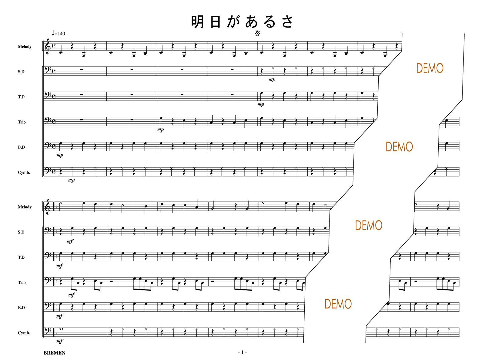 主な使用楽器:スネアドラム(小太鼓)、テナードラム(中太鼓)、トリオタム(ツインタム)、バスドラム(大太鼓)、シンバル等