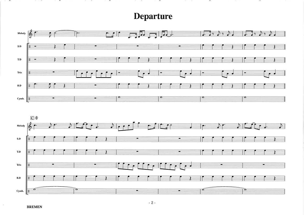主な使用楽器:スネアドラム(小太鼓)、テナードラム(中太鼓)、トリオタム(ツインタム)、バスドラム(大太鼓)、シンバル等