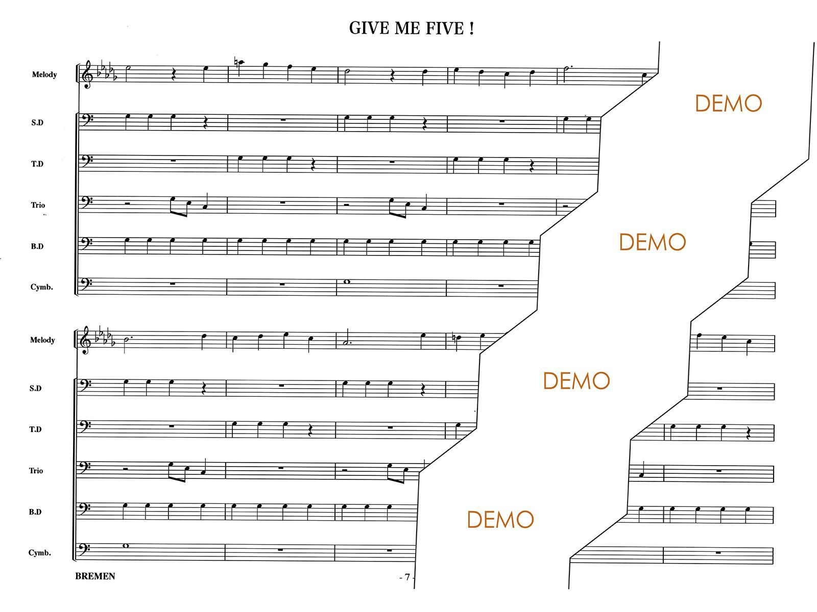 主な使用楽器:スネアドラム(小太鼓)、テナードラム(中太鼓)、トリオタム(ツインタム)、バスドラム(大太鼓)、シンバル等