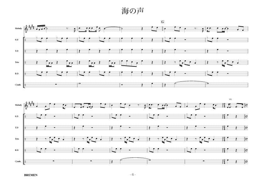 主な使用楽器:スネアドラム(小太鼓)、テナードラム(中太鼓)、トリオタム(ツインタム)、バスドラム(大太鼓)、シンバル等