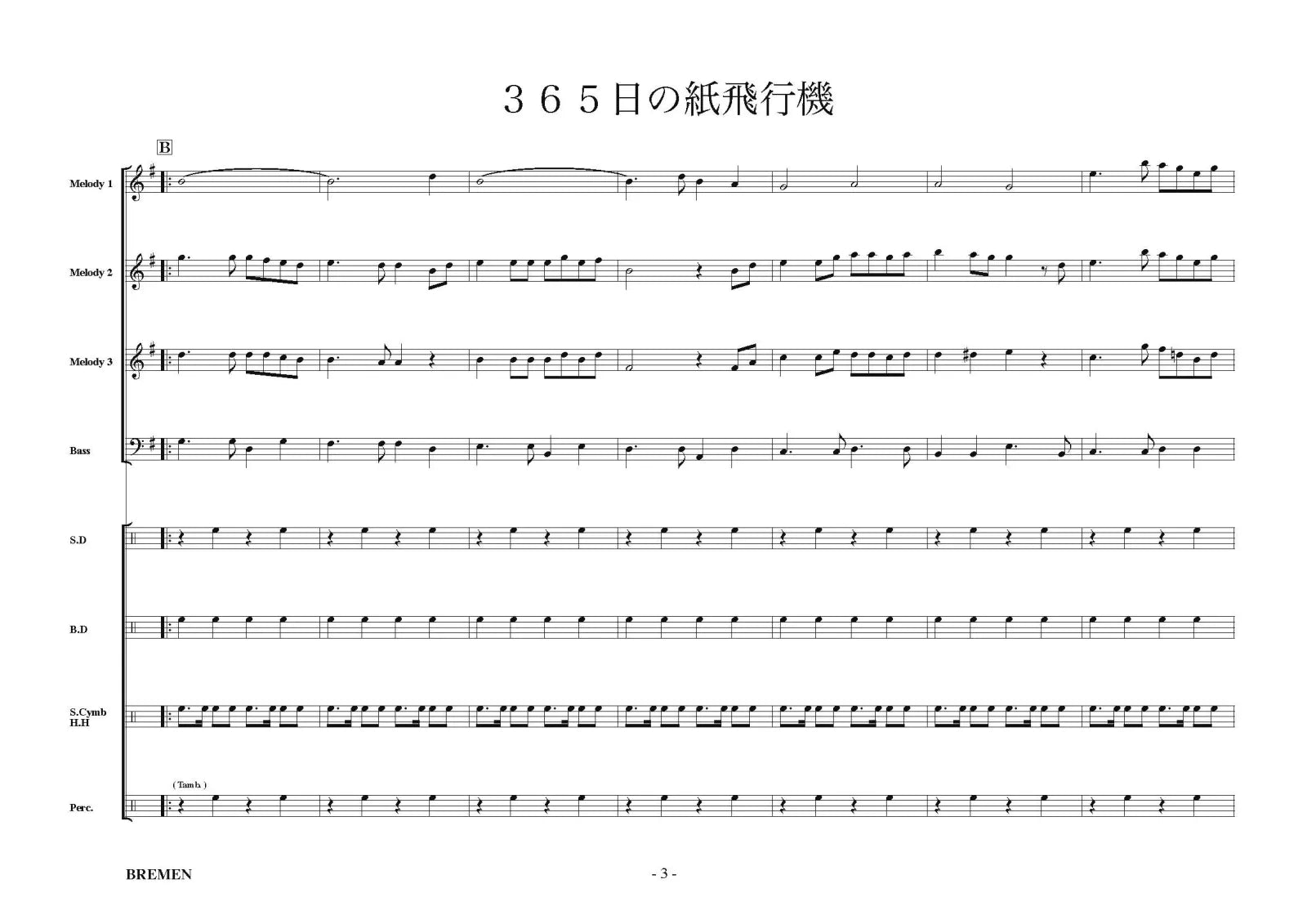 ■メロディー系4パート(Melody1,2,3,Bass)の楽器につきましては、詳細の編成例を参考にお持ちの楽器で演奏してください