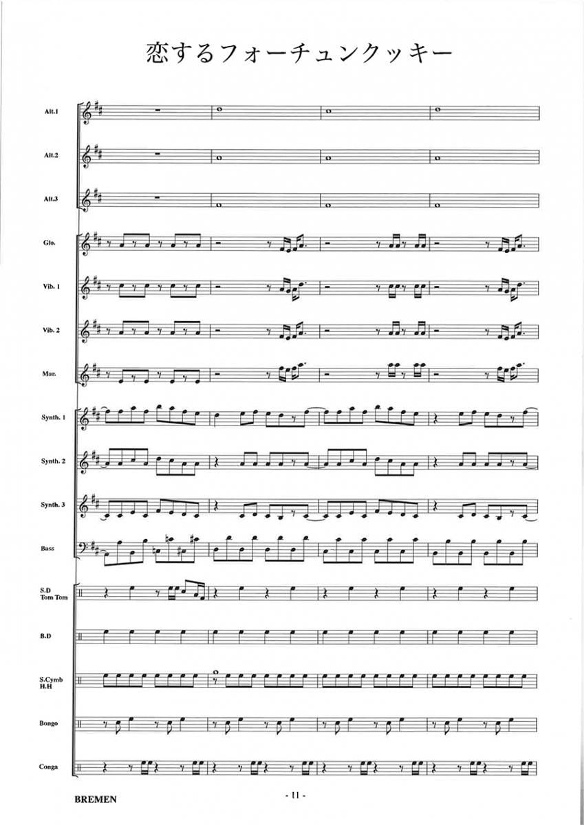 主な使用楽器:鍵盤ハーモニカ、グロッケン(鉄琴)、ビブラフォーン(鉄琴)、マリンバ(木琴)、シンセサイザー(電子オルガン)、ベース(低音楽器)、スネアドラム(小太鼓)、バスドラム(大太鼓)、パーカッション、ティンパニー等