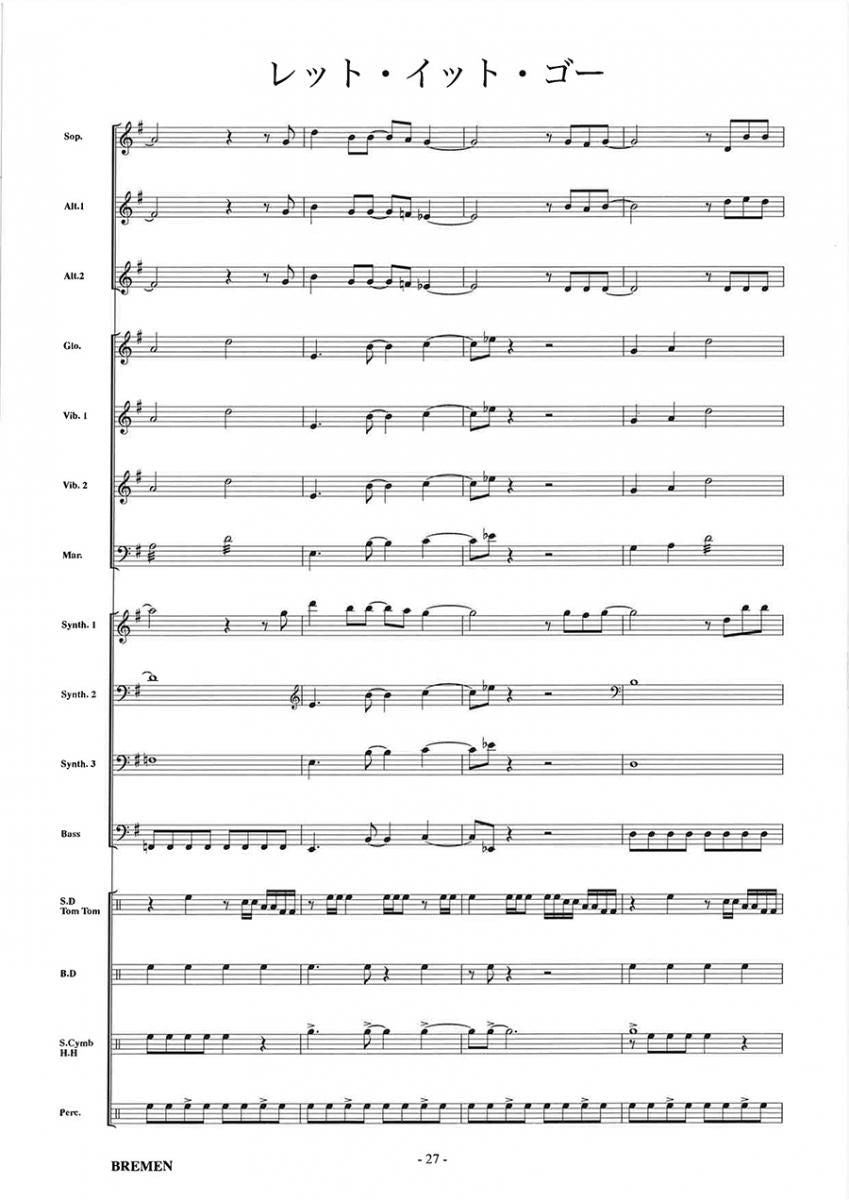 主な使用楽器:鍵盤ハーモニカ、グロッケン(鉄琴)、ビブラフォーン(鉄琴)、マリンバ(木琴)、シンセサイザー(電子オルガン)、ベース(低音楽器)、スネアドラム(小太鼓)、バスドラム(大太鼓)、パーカッション、ティンパニー等