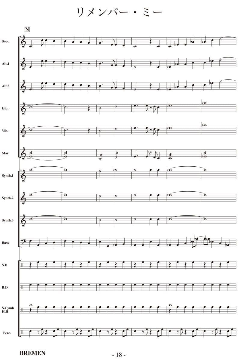 主な使用楽器:鍵盤ハーモニカ、グロッケン(鉄琴)、ビブラフォーン(鉄琴)、マリンバ(木琴)、シンセサイザー(電子オルガン)、ベース(低音楽器)、スネアドラム(小太鼓)、バスドラム(大太鼓)、パーカッション、ティンパニー等