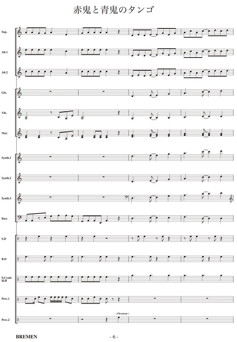 主な使用楽器:鍵盤ハーモニカ、グロッケン(鉄琴)、ビブラフォーン(鉄琴)、マリンバ(木琴)、シンセサイザー(電子オルガン)、ベース(低音楽器)、スネアドラム(小太鼓)、バスドラム(大太鼓)、パーカッション、ティンパニー等
