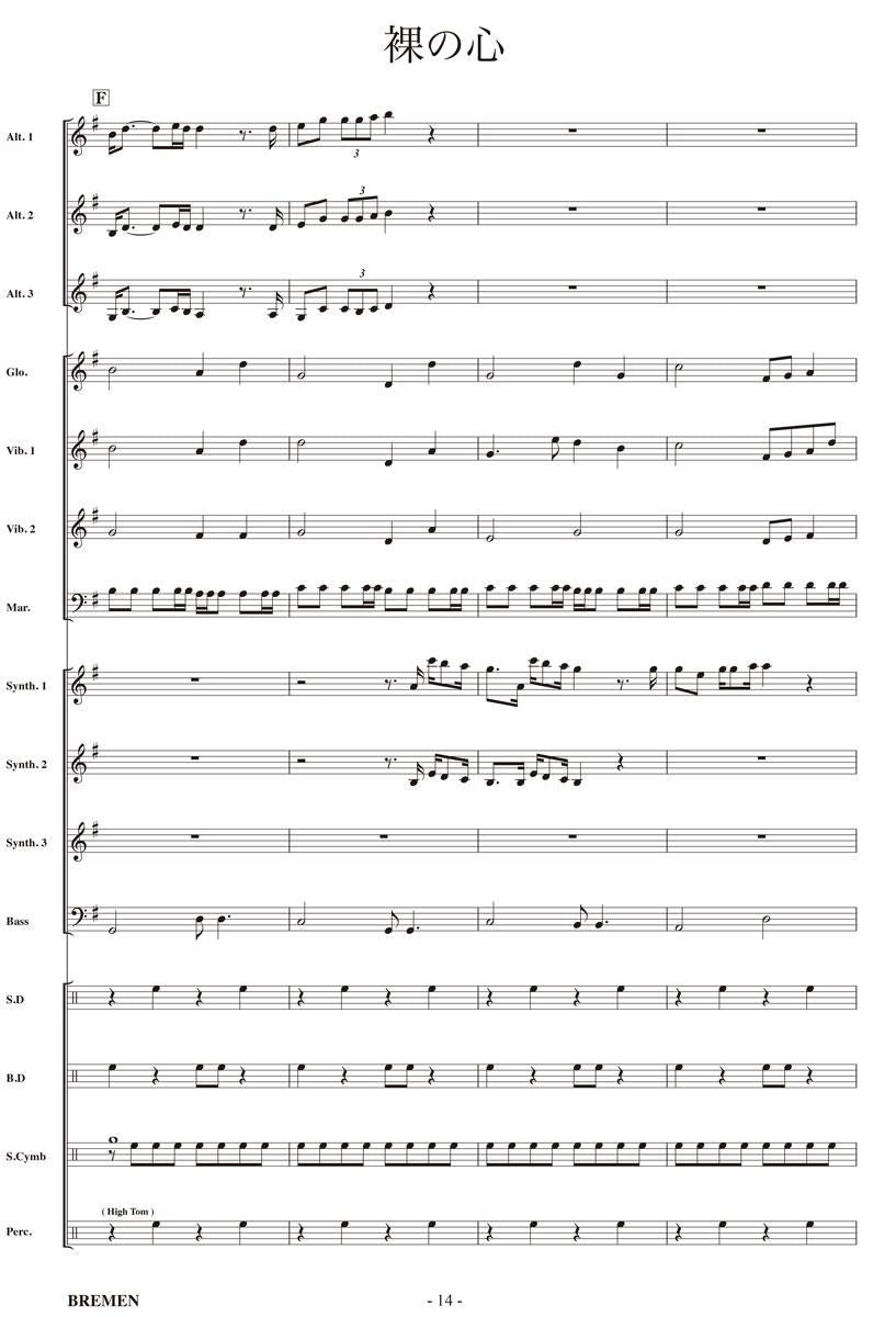 主な使用楽器:鍵盤ハーモニカ、グロッケン(鉄琴)、ビブラフォーン(鉄琴)、マリンバ(木琴)、シンセサイザー(電子オルガン)、ベース(低音楽器)、スネアドラム(小太鼓)、バスドラム(大太鼓)、パーカッション、ティンパニー等