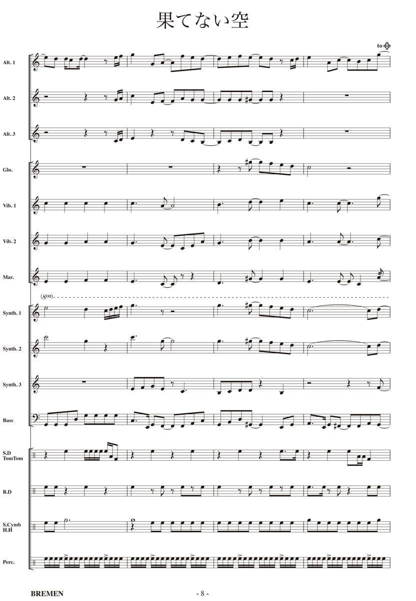 主な使用楽器:鍵盤ハーモニカ、グロッケン(鉄琴)、ビブラフォーン(鉄琴)、マリンバ(木琴)、シンセサイザー(電子オルガン)、ベース(低音楽器)、スネアドラム(小太鼓)、バスドラム(大太鼓)、パーカッション、ティンパニー等