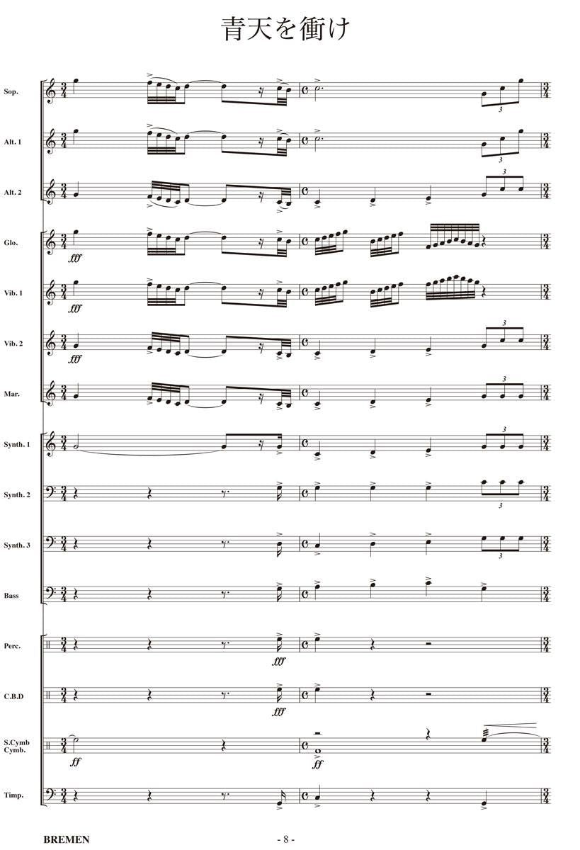主な使用楽器:鍵盤ハーモニカ、グロッケン(鉄琴)、ビブラフォーン(鉄琴)、マリンバ(木琴)、シンセサイザー(電子オルガン)、ベース(低音楽器)、スネアドラム(小太鼓)、バスドラム(大太鼓)、パーカッション、ティンパニー等