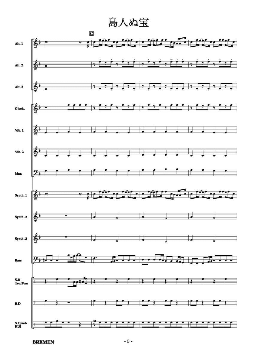 主な使用楽器:鍵盤ハーモニカ、グロッケン(鉄琴)、ビブラフォーン(鉄琴)、マリンバ(木琴)、シンセサイザー(電子オルガン)、ベース(低音楽器)、スネアドラム(小太鼓)、バスドラム(大太鼓)、パーカッション、ティンパニー等