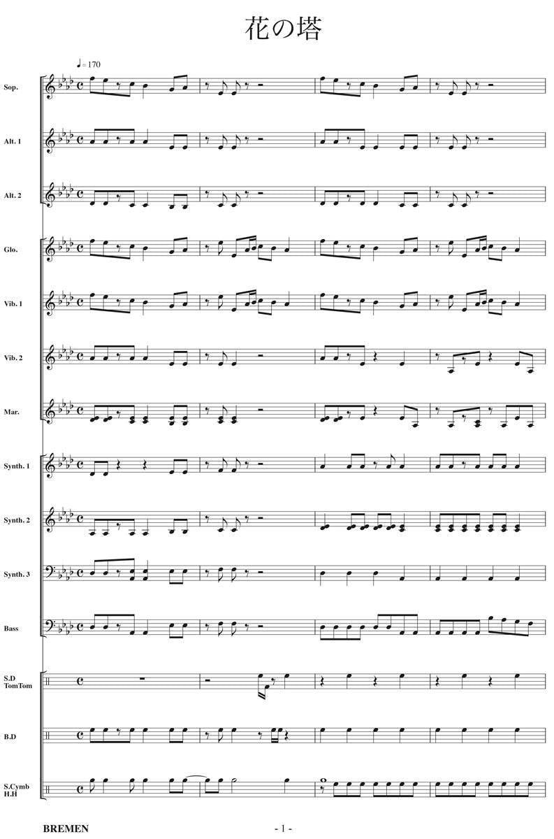 主な使用楽器:鍵盤ハーモニカ、グロッケン(鉄琴)、ビブラフォーン(鉄琴)、マリンバ(木琴)、シンセサイザー(電子オルガン)、ベース(低音楽器)、スネアドラム(小太鼓)、バスドラム(大太鼓)、パーカッション、ティンパニー等