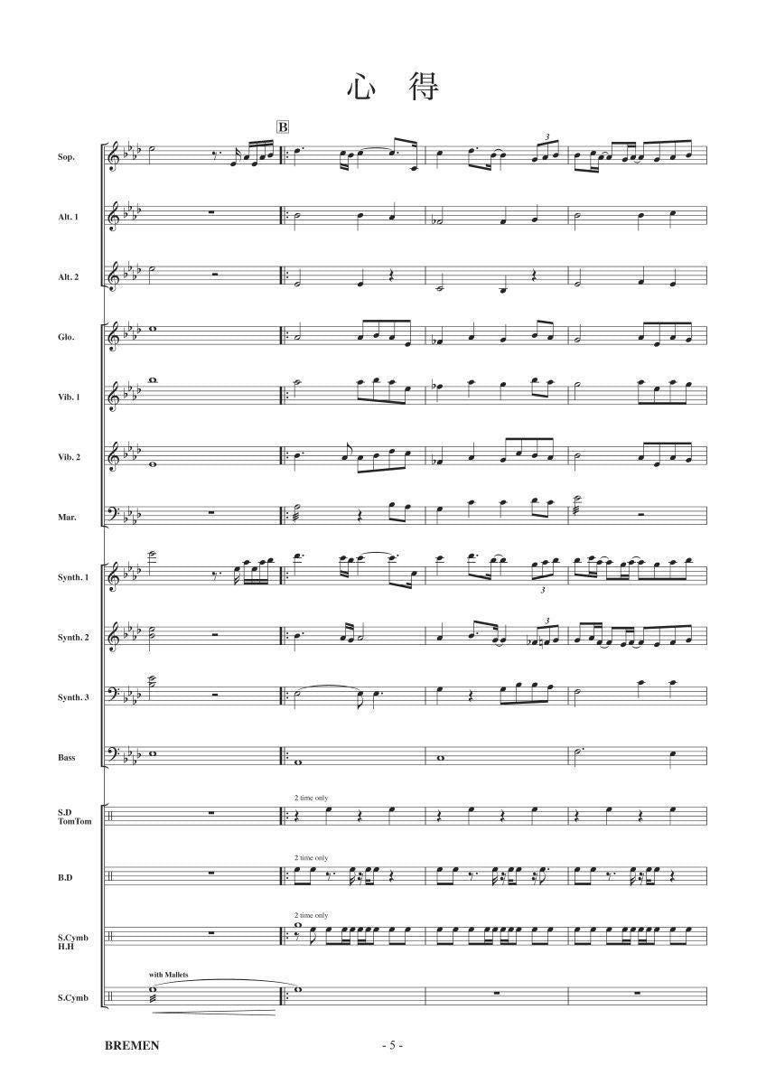 主な使用楽器:鍵盤ハーモニカ、グロッケン(鉄琴)、ビブラフォーン(鉄琴)、マリンバ(木琴)、シンセサイザー(電子オルガン)、ベース(低音楽器)、スネアドラム(小太鼓)、バスドラム(大太鼓)、パーカッション、ティンパニー等