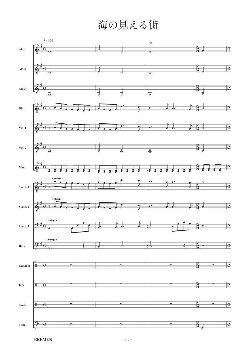 主な使用楽器:鍵盤ハーモニカ、グロッケン(鉄琴)、ビブラフォーン(鉄琴)、マリンバ(木琴)、シンセサイザー(電子オルガン)、ベース(低音楽器)、スネアドラム(小太鼓)、バスドラム(大太鼓)、パーカッション、ティンパニー等