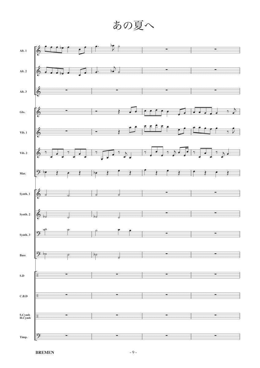 主な使用楽器:鍵盤ハーモニカ、グロッケン(鉄琴)、ビブラフォーン(鉄琴)、マリンバ(木琴)、シンセサイザー(電子オルガン)、ベース(低音楽器)、スネアドラム(小太鼓)、バスドラム(大太鼓)、パーカッション、ティンパニー等
