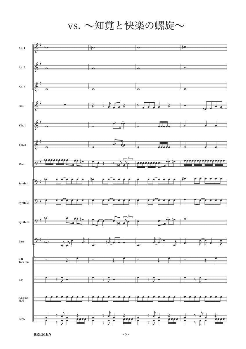 主な使用楽器:鍵盤ハーモニカ、グロッケン(鉄琴)、ビブラフォーン(鉄琴)、マリンバ(木琴)、シンセサイザー(電子オルガン)、ベース(低音楽器)、スネアドラム(小太鼓)、バスドラム(大太鼓)、パーカッション、ティンパニー等