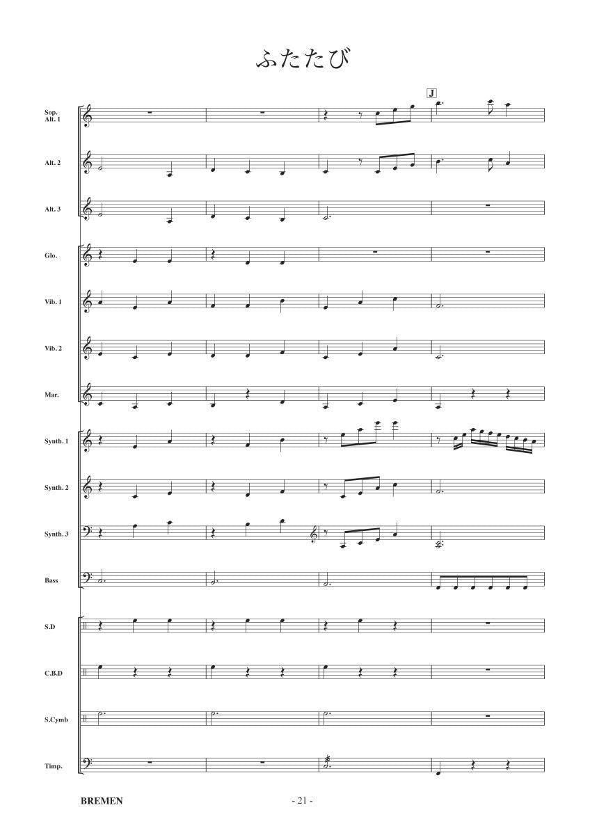 主な使用楽器:鍵盤ハーモニカ、グロッケン(鉄琴)、ビブラフォーン(鉄琴)、マリンバ(木琴)、シンセサイザー(電子オルガン)、ベース(低音楽器)、スネアドラム(小太鼓)、バスドラム(大太鼓)、パーカッション、ティンパニー等