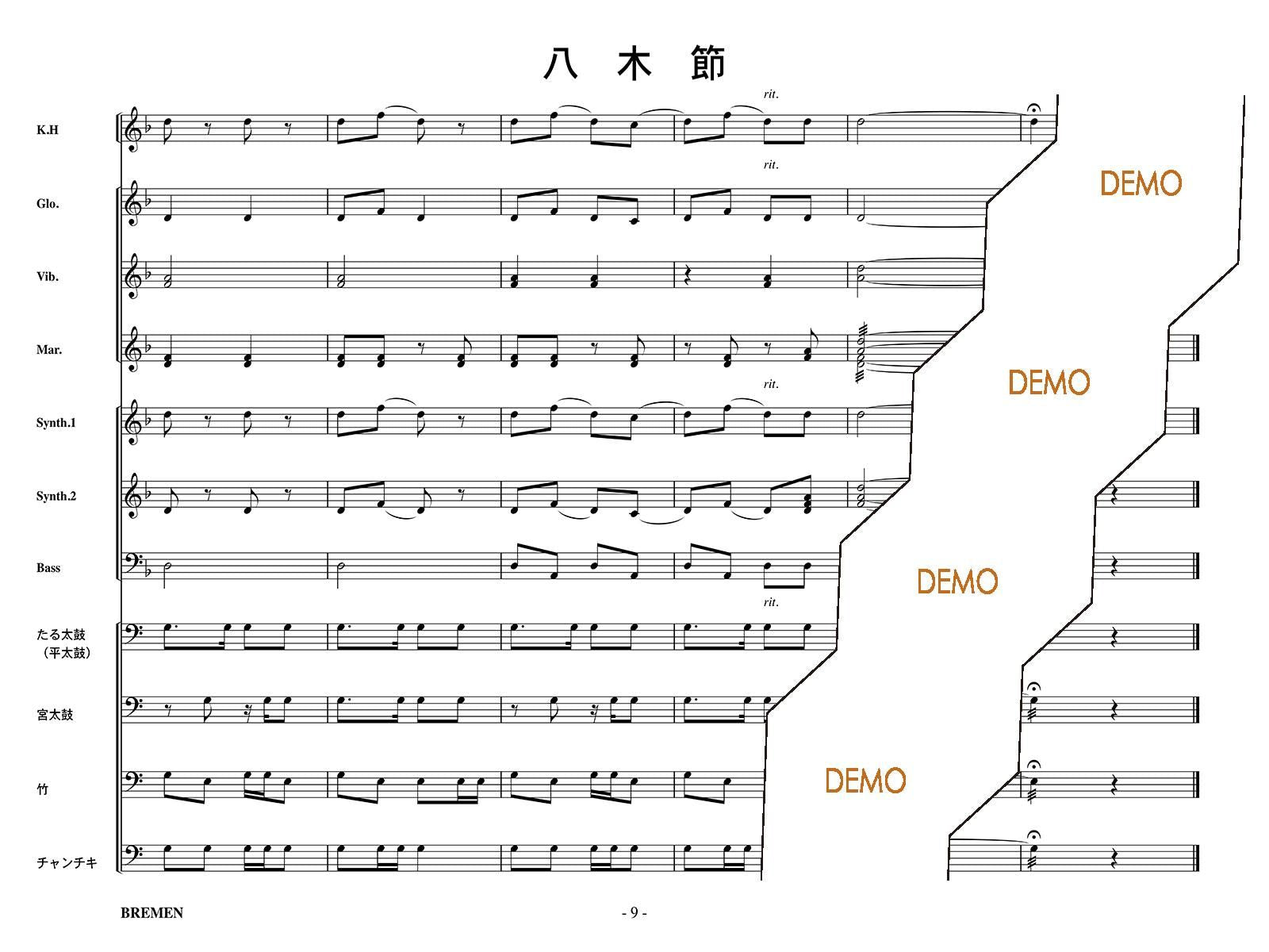 主な使用楽器:鍵盤ハーモニカ、グロッケン(鉄琴)、ビブラフォーン(鉄琴)、マリンバ(木琴)、シンセサイザー(電子オルガン)、ベース(低音楽器)、宮太鼓、長胴太鼓、平太鼓(たる太鼓)、締太鼓、チャンチキ、チャッパ等