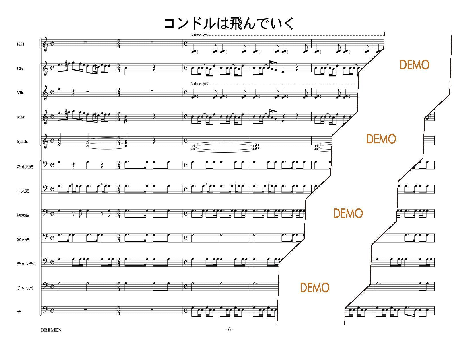 主な使用楽器:鍵盤ハーモニカ、グロッケン(鉄琴)、ビブラフォーン(鉄琴)、マリンバ(木琴)、シンセサイザー(電子オルガン)、ベース(低音楽器)、宮太鼓、長胴太鼓、平太鼓(たる太鼓)、締太鼓、チャンチキ、チャッパ等