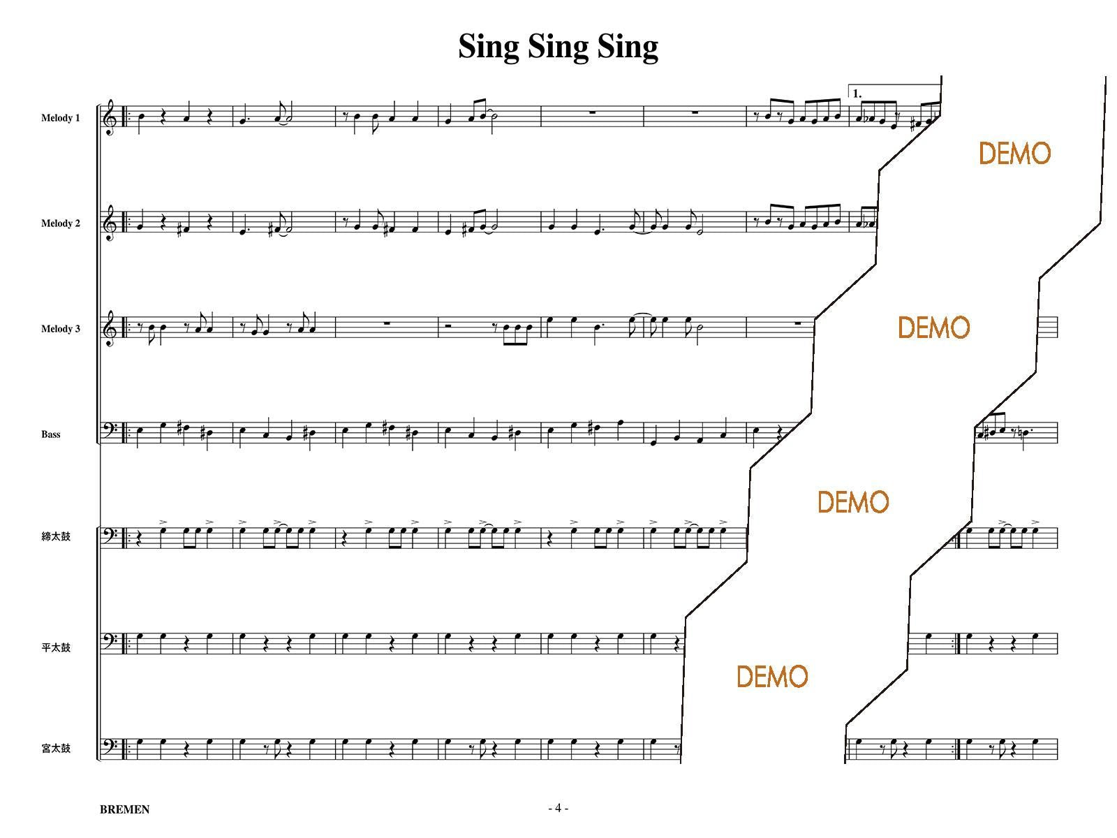 主な使用楽器:鍵盤ハーモニカ、グロッケン(鉄琴)、ビブラフォーン(鉄琴)、マリンバ(木琴)、シンセサイザー(電子オルガン)、ベース(低音楽器)、宮太鼓、長胴太鼓、平太鼓(たる太鼓)、締太鼓、チャンチキ、チャッパ等