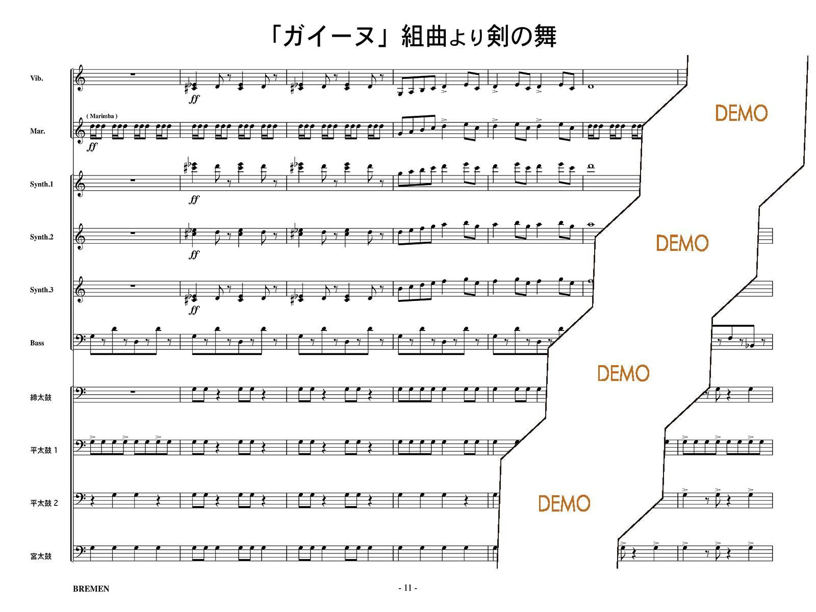 主な使用楽器:鍵盤ハーモニカ、グロッケン(鉄琴)、ビブラフォーン(鉄琴)、マリンバ(木琴)、シンセサイザー(電子オルガン)、ベース(低音楽器)、宮太鼓、長胴太鼓、平太鼓(たる太鼓)、締太鼓、チャンチキ、チャッパ等