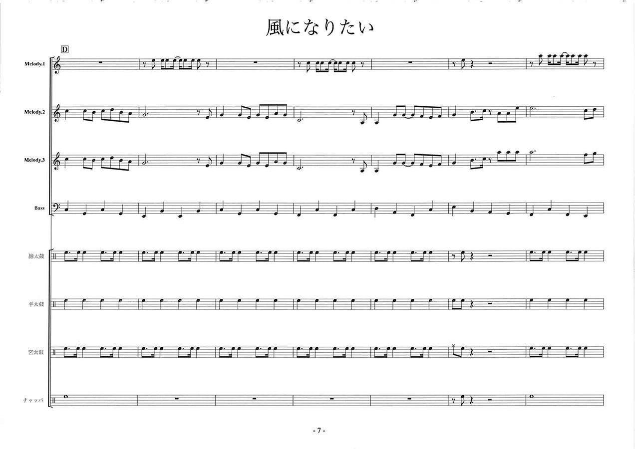 主な使用楽器:鍵盤ハーモニカ、グロッケン(鉄琴)、ビブラフォーン(鉄琴)、マリンバ(木琴)、シンセサイザー(電子オルガン)、ベース(低音楽器)、宮太鼓、長胴太鼓、平太鼓(たる太鼓)、締太鼓、チャンチキ、チャッパ等