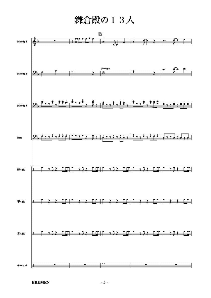主な使用楽器:鍵盤ハーモニカ、グロッケン(鉄琴)、ビブラフォーン(鉄琴)、マリンバ(木琴)、シンセサイザー(電子オルガン)、ベース(低音楽器)、宮太鼓、長胴太鼓、平太鼓(たる太鼓)、締太鼓、チャンチキ、チャッパ等