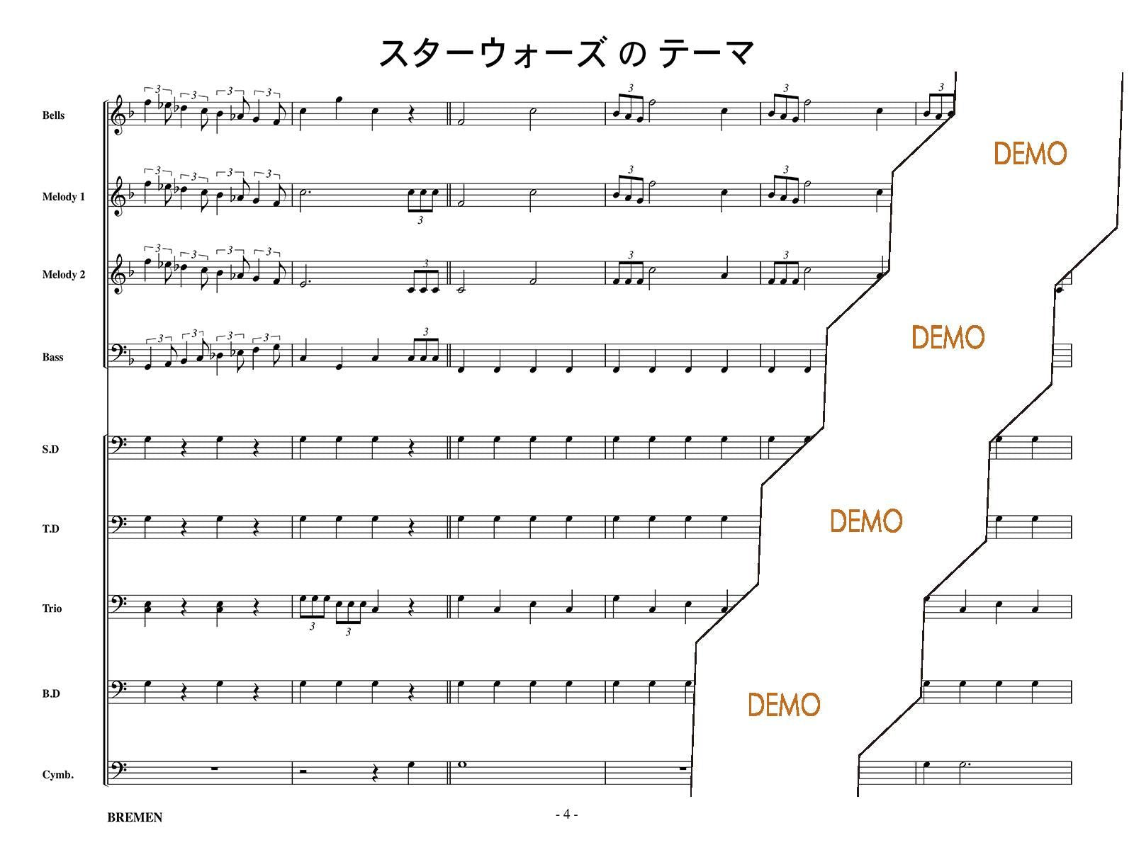 主な使用楽器:グロッケン(鉄琴)、マーチングキーボード、ベース(低音楽器)、スネアドラム(小太鼓)、テナードラム(中太鼓)、トリオタム(ツインタム)、バスドラム(大太鼓)、シンバル等