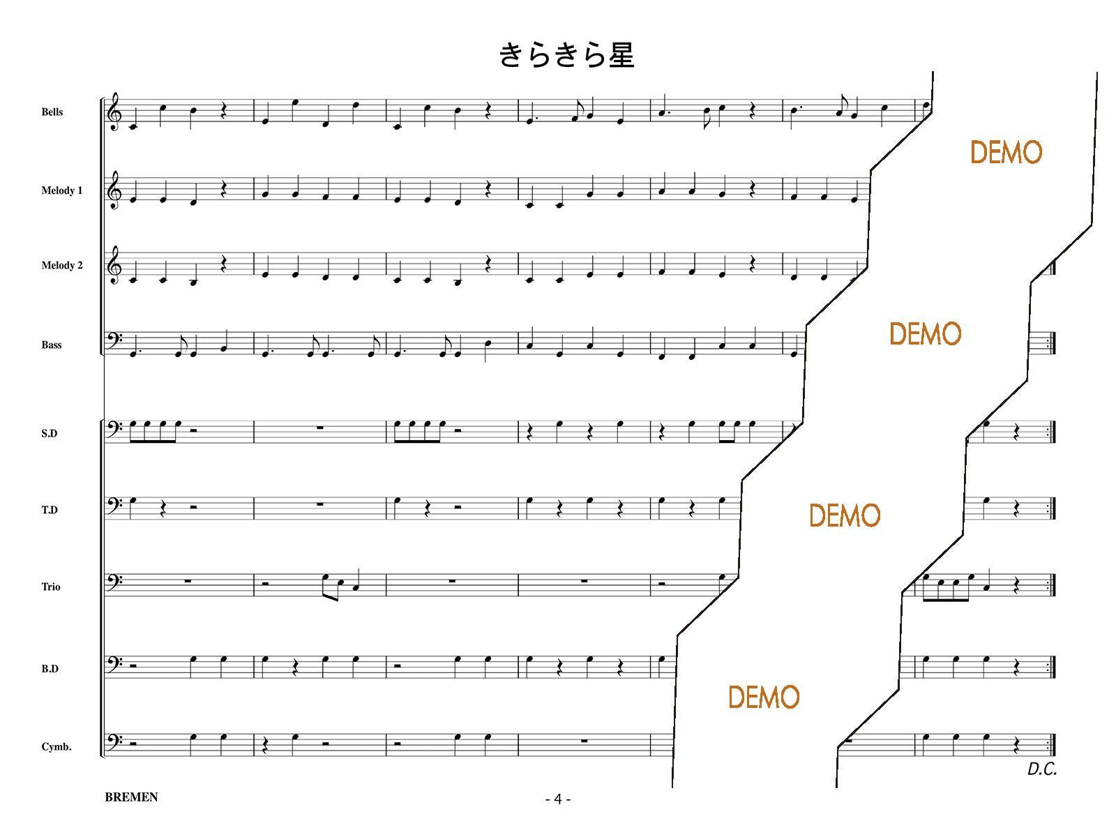 主な使用楽器:グロッケン(鉄琴)、マーチングキーボード、ベース(低音楽器)、スネアドラム(小太鼓)、テナードラム(中太鼓)、トリオタム(ツインタム)、バスドラム(大太鼓)、シンバル等