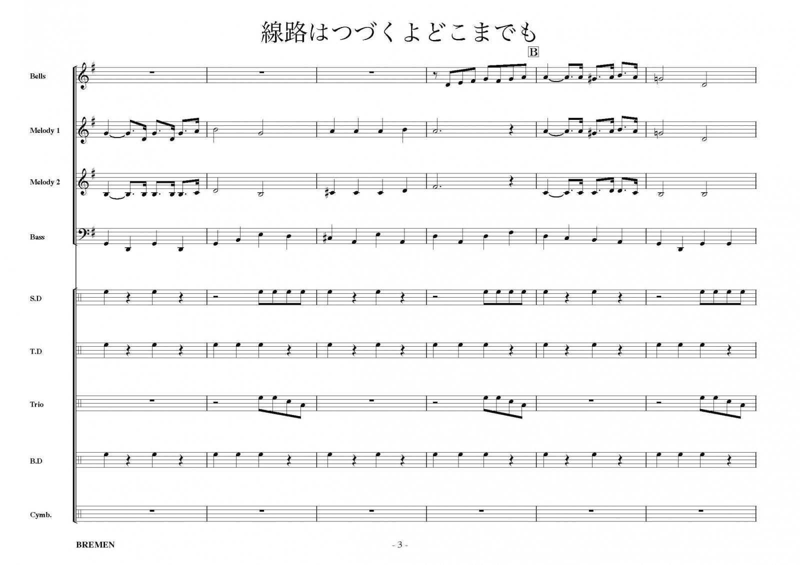 主な使用楽器:グロッケン(鉄琴)、マーチングキーボード、ベース(低音楽器)、スネアドラム(小太鼓)、テナードラム(中太鼓)、トリオタム(ツインタム)、バスドラム(大太鼓)、シンバル等