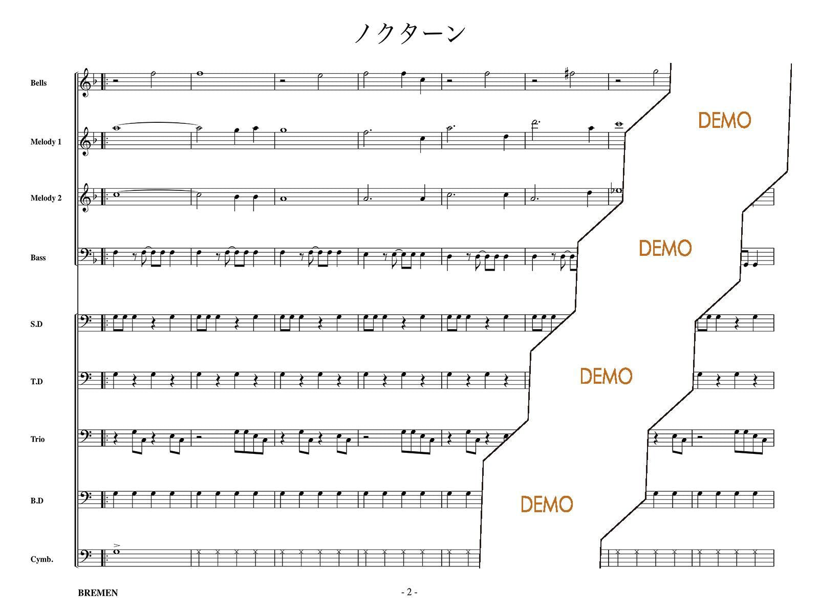 主な使用楽器:グロッケン(鉄琴)、マーチングキーボード、ベース(低音楽器)、スネアドラム(小太鼓)、テナードラム(中太鼓)、トリオタム(ツインタム)、バスドラム(大太鼓)、シンバル等