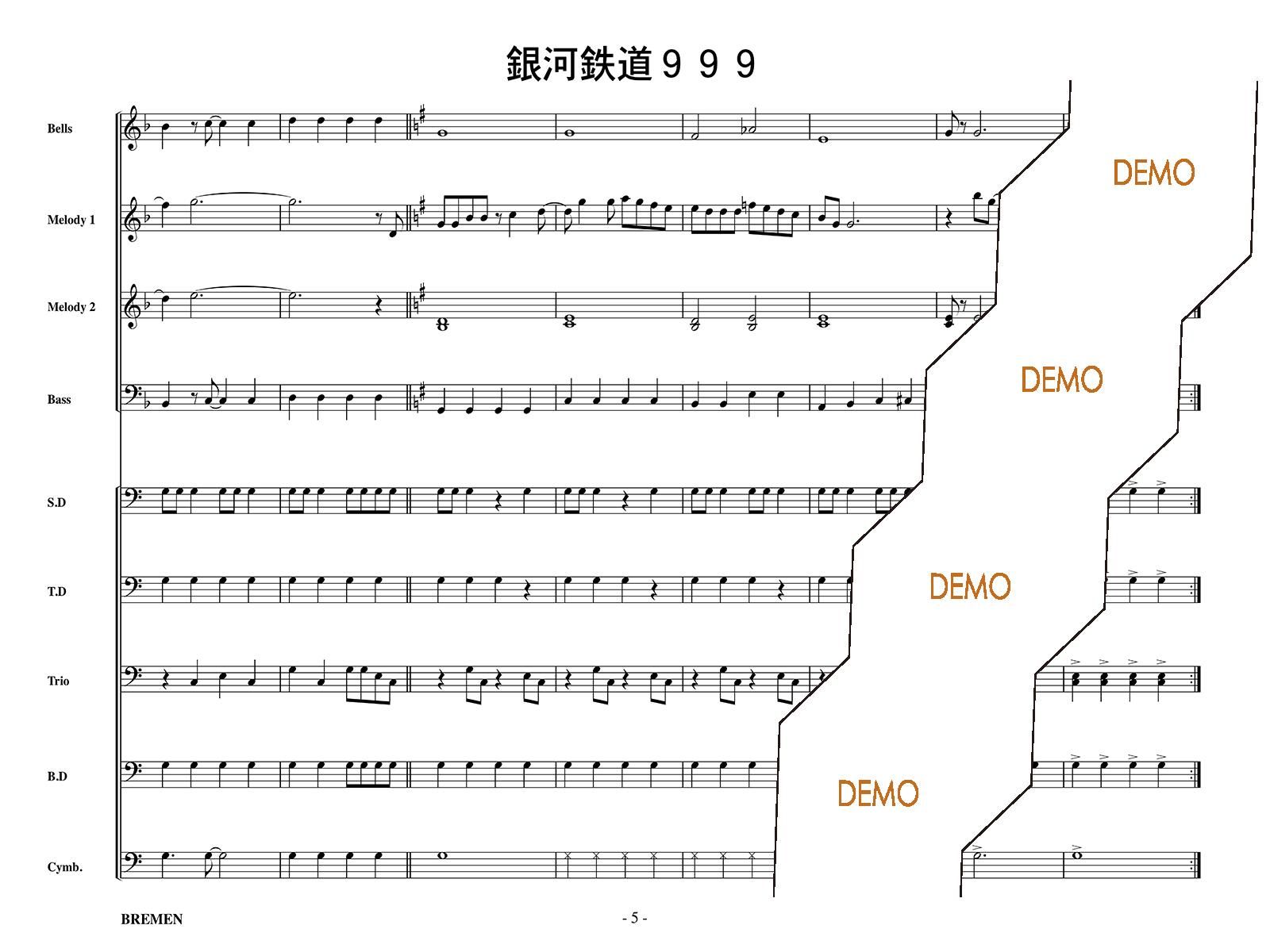 主な使用楽器:グロッケン(鉄琴)、マーチングキーボード、ベース(低音楽器)、スネアドラム(小太鼓)、テナードラム(中太鼓)、トリオタム(ツインタム)、バスドラム(大太鼓)、シンバル等