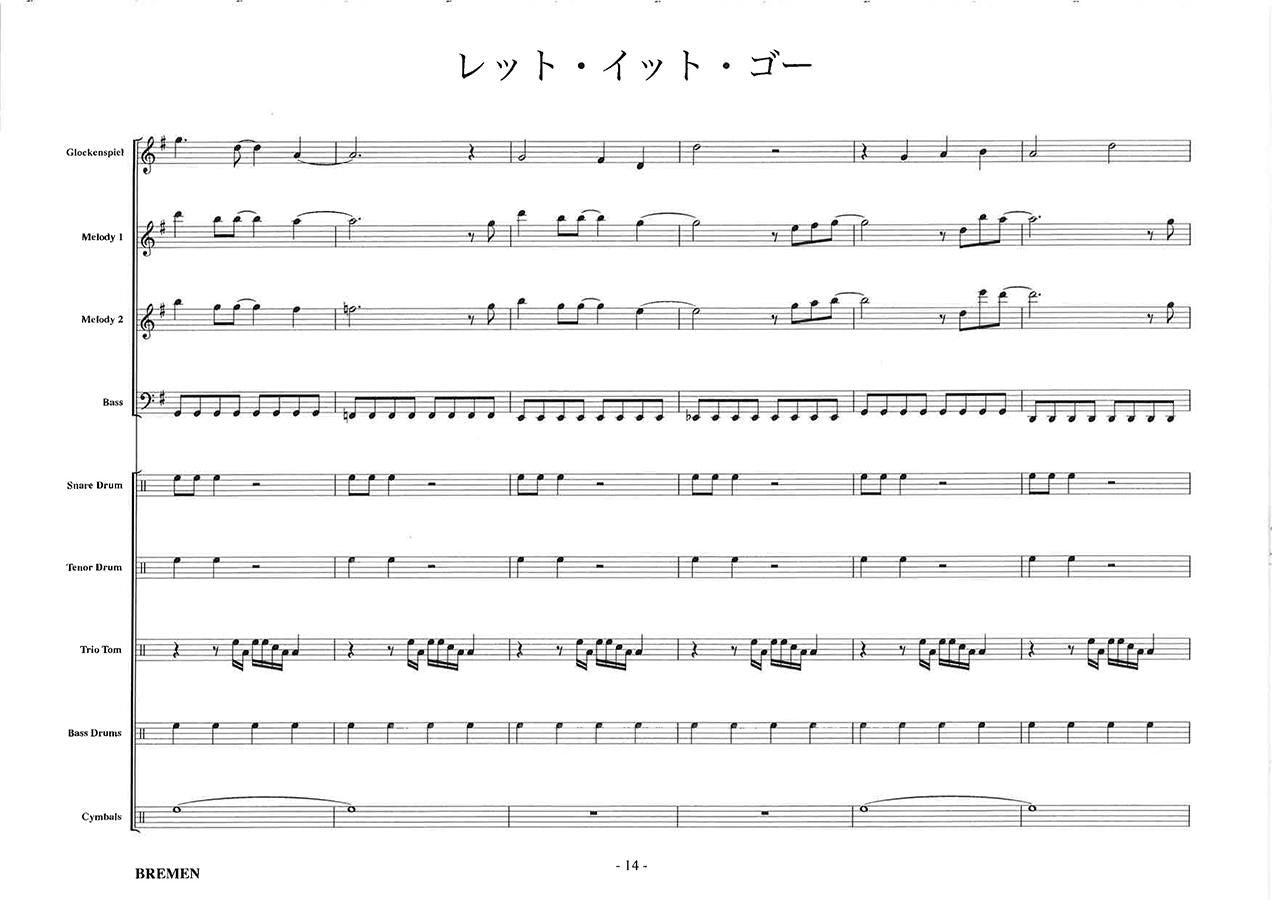 主な使用楽器:グロッケン(鉄琴)、マーチングキーボード、ベース(低音楽器)、スネアドラム(小太鼓)、テナードラム(中太鼓)、トリオタム(ツインタム)、バスドラム(大太鼓)、シンバル等