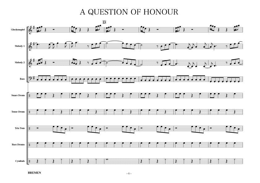 主な使用楽器:グロッケン(鉄琴)、マーチングキーボード、ベース(低音楽器)、スネアドラム(小太鼓)、テナードラム(中太鼓)、トリオタム(ツインタム)、バスドラム(大太鼓)、シンバル等