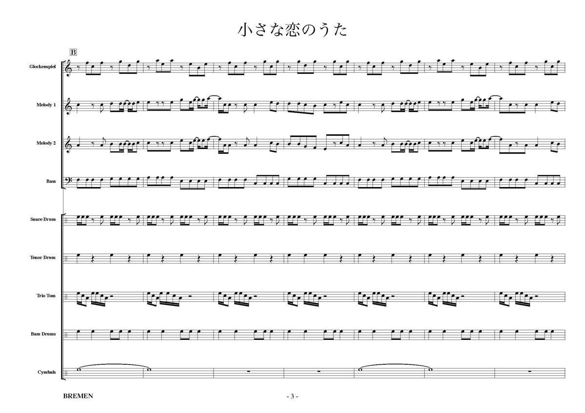 主な使用楽器:グロッケン(鉄琴)、マーチングキーボード、ベース(低音楽器)、スネアドラム(小太鼓)、テナードラム(中太鼓)、トリオタム(ツインタム)、バスドラム(大太鼓)、シンバル等