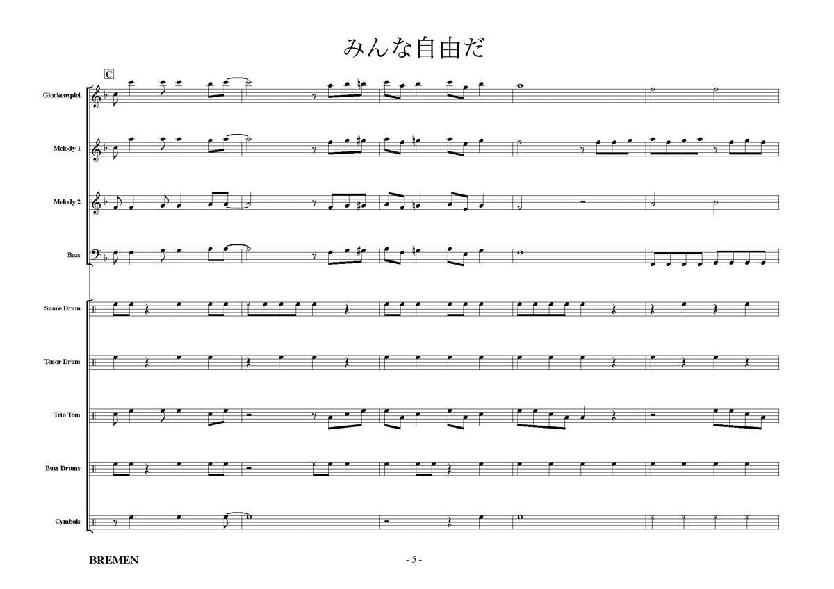 主な使用楽器:グロッケン(鉄琴)、マーチングキーボード、ベース(低音楽器)、スネアドラム(小太鼓)、テナードラム(中太鼓)、トリオタム(ツインタム)、バスドラム(大太鼓)、シンバル等