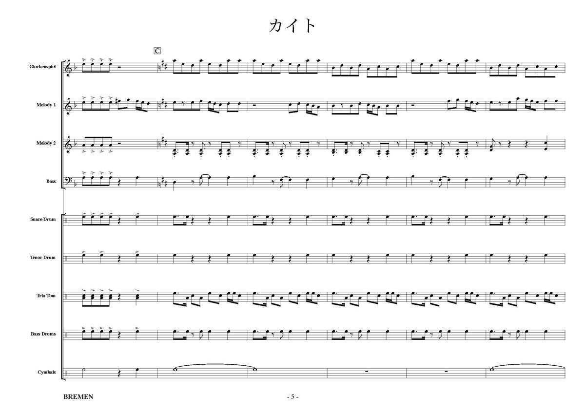 主な使用楽器:グロッケン(鉄琴)、マーチングキーボード、ベース(低音楽器)、スネアドラム(小太鼓)、テナードラム(中太鼓)、トリオタム(ツインタム)、バスドラム(大太鼓)、シンバル等