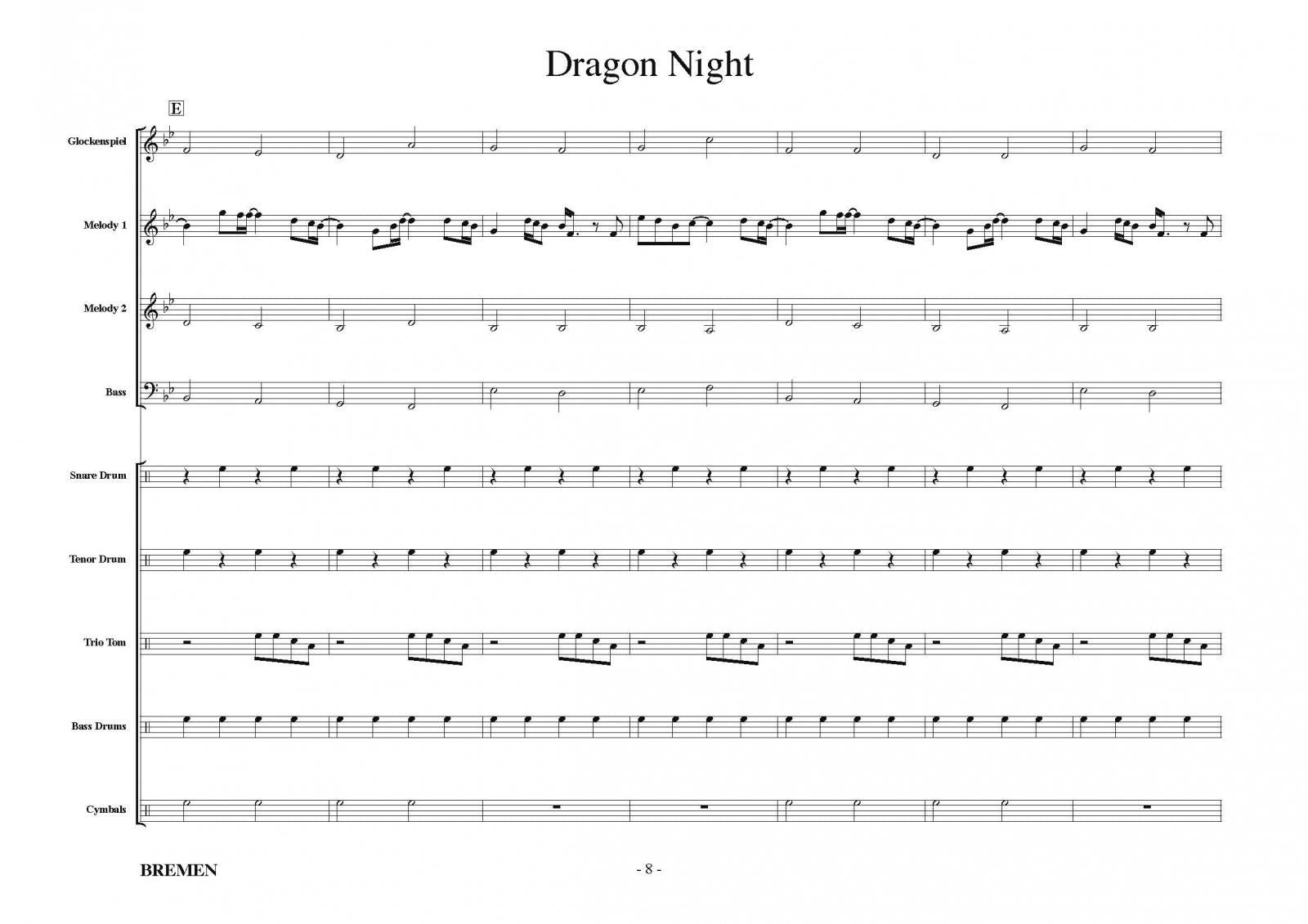 主な使用楽器:グロッケン(鉄琴)、マーチングキーボード、ベース(低音楽器)、スネアドラム(小太鼓)、テナードラム(中太鼓)、トリオタム(ツインタム)、バスドラム(大太鼓)、シンバル等