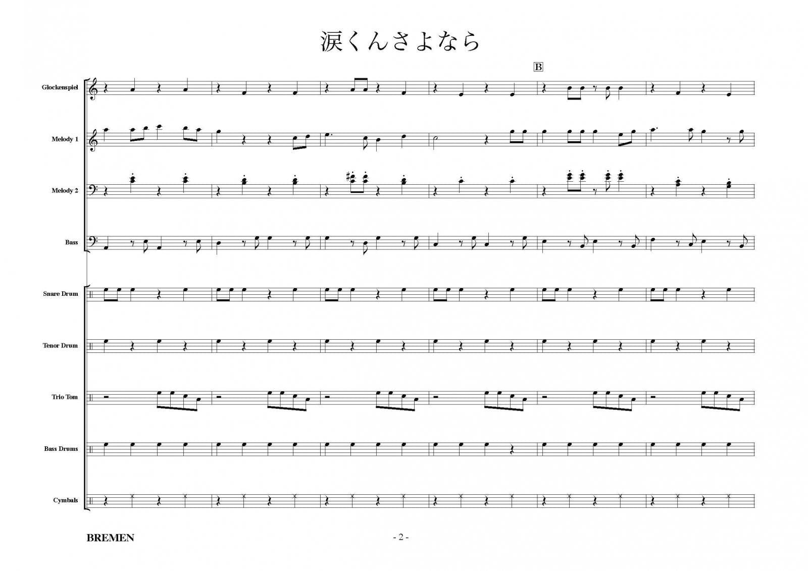 主な使用楽器:グロッケン(鉄琴)、マーチングキーボード、ベース(低音楽器)、スネアドラム(小太鼓)、テナードラム(中太鼓)、トリオタム(ツインタム)、バスドラム(大太鼓)、シンバル等