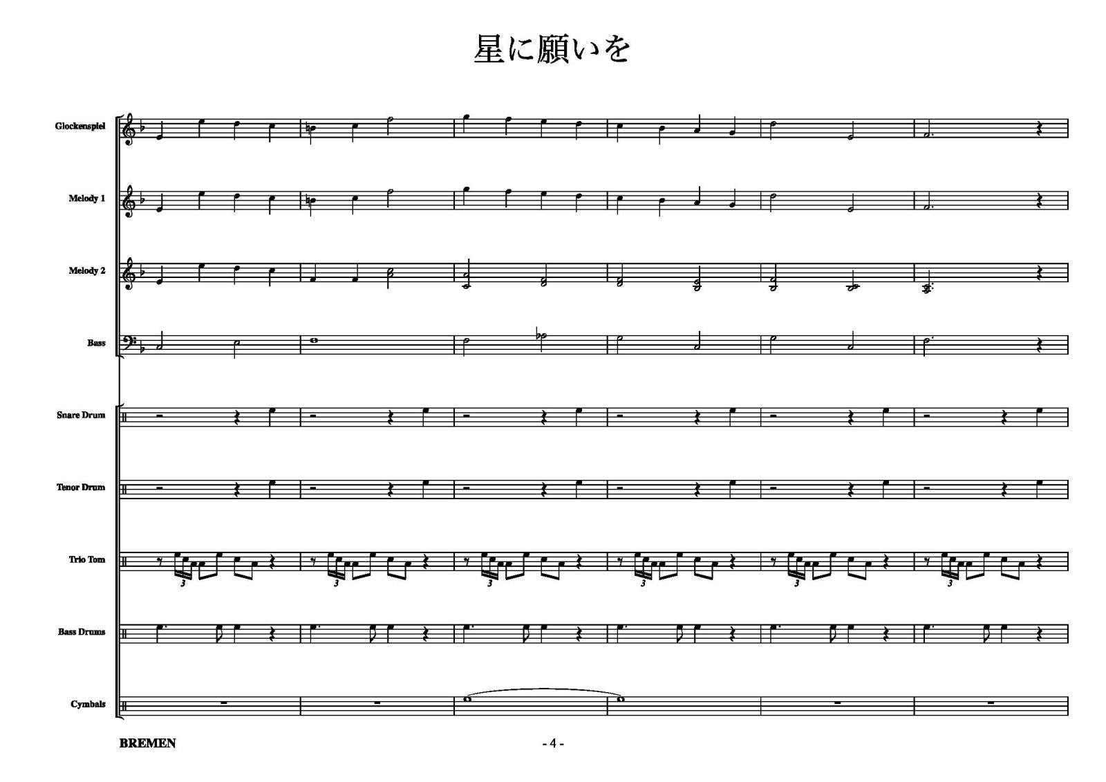 主な使用楽器:グロッケン(鉄琴)、マーチングキーボード、ベース(低音楽器)、スネアドラム(小太鼓)、テナードラム(中太鼓)、トリオタム(ツインタム)、バスドラム(大太鼓)、シンバル等