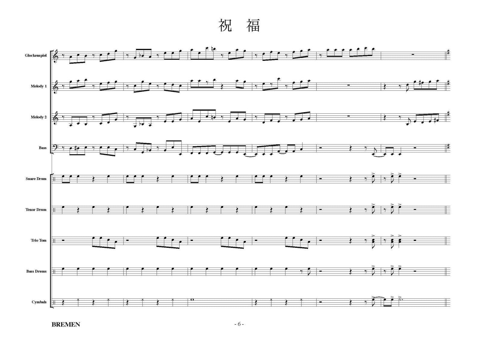 鼓隊用にレンジされた楽譜です♪