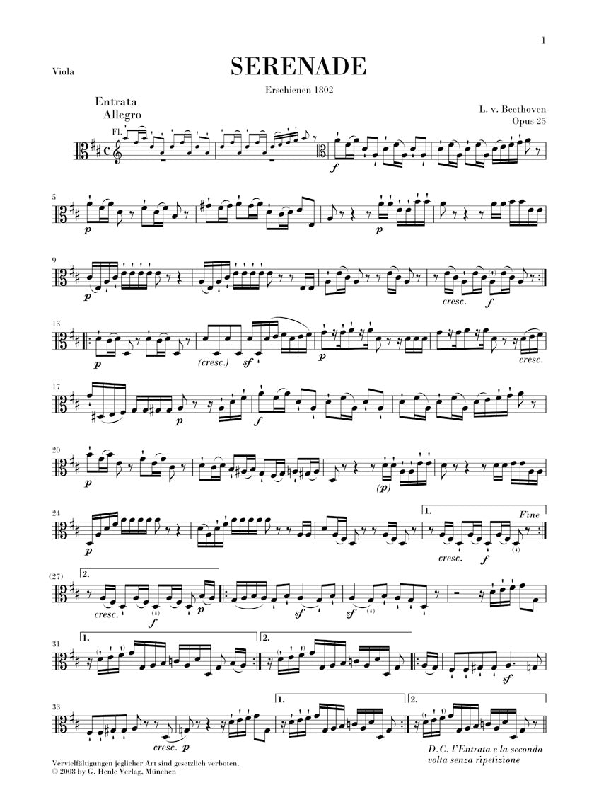Beethoven,Ludwig van:Serenade D major op.25 for Flute, Violin and Viola